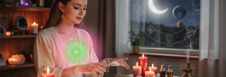 Au-delà des influences cosmiques et telluriques, la réussite d’un rituel d’amour dépend étroitement de l’état de votre chakra du cœur, appelé Anahata dans la tradition yogique. Situé au centre de la poitrine, ce centre énergétique régit la capacité à donner et recevoir l’amour, la compassion et la bienveillance. Un chakra du cœur bloqué – suite à des blessures affectives, des ruptures ou un manque d’amour de soi – peut agir comme un véritable filtre qui affaiblit l’effet des rituels, même les plus sophistiqués.